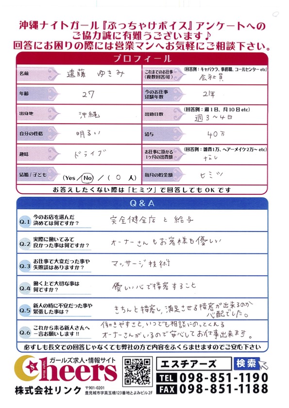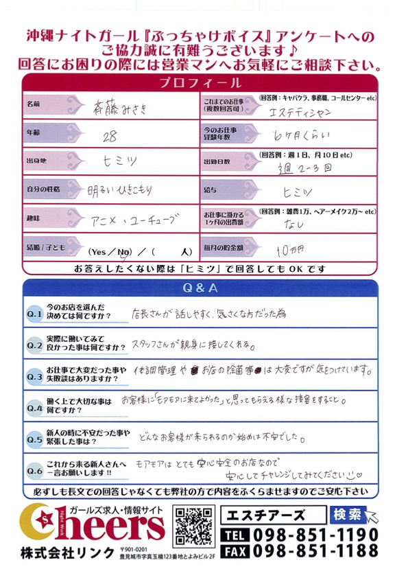 NAGOMOREは週一回だけという私のわがままをきいてくれました。無理ないスケジュールを組むことでサービスにも余裕が生まれ、ありがたいことに少ない出勤でも指名をいただけています。